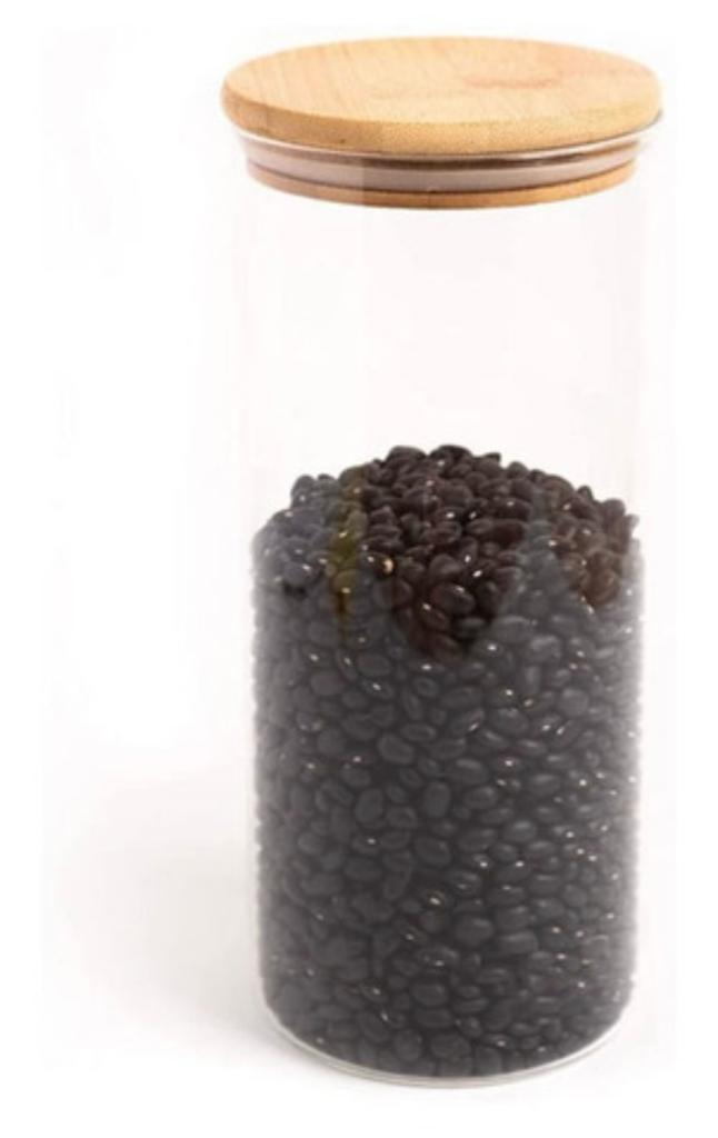 Esse é o pote de vidro hermético redondo de 1650ml para mantimentos com tampa de bambu da OIKOS.