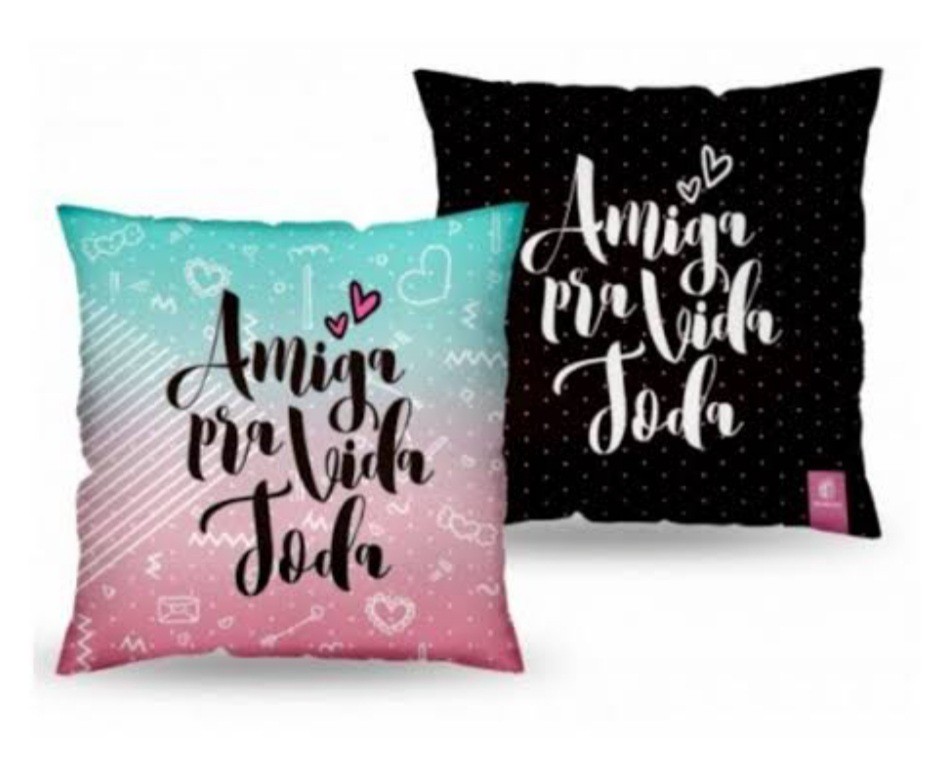 Almofada Amiga Pra Vida Toda A Almofada quadrada AMIGA PRA VIDA TODA é macia, fofinha e superconfortável além de ser prática, deixar o ambiente mais charmoso e com estilo, permitindo ainda seu uso em ambos os lados. Possui a capa 100% de poliéster e é preenchida com fibra de poliéster siliconada.