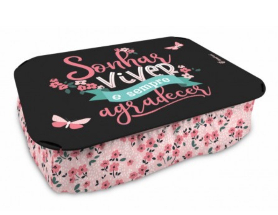 Almofada Bandeja Sempre Agradecer Todo o conforto de uma almofada Brasfoot, agora com suporte pra colocar o notebook, livro ou caderno de estudos. Além de uma estampa super linda e criativa, sua decoração vai ficar ainda mais perfeita e completa! Funcionalidade e conforto nem um item só, quem não quer?