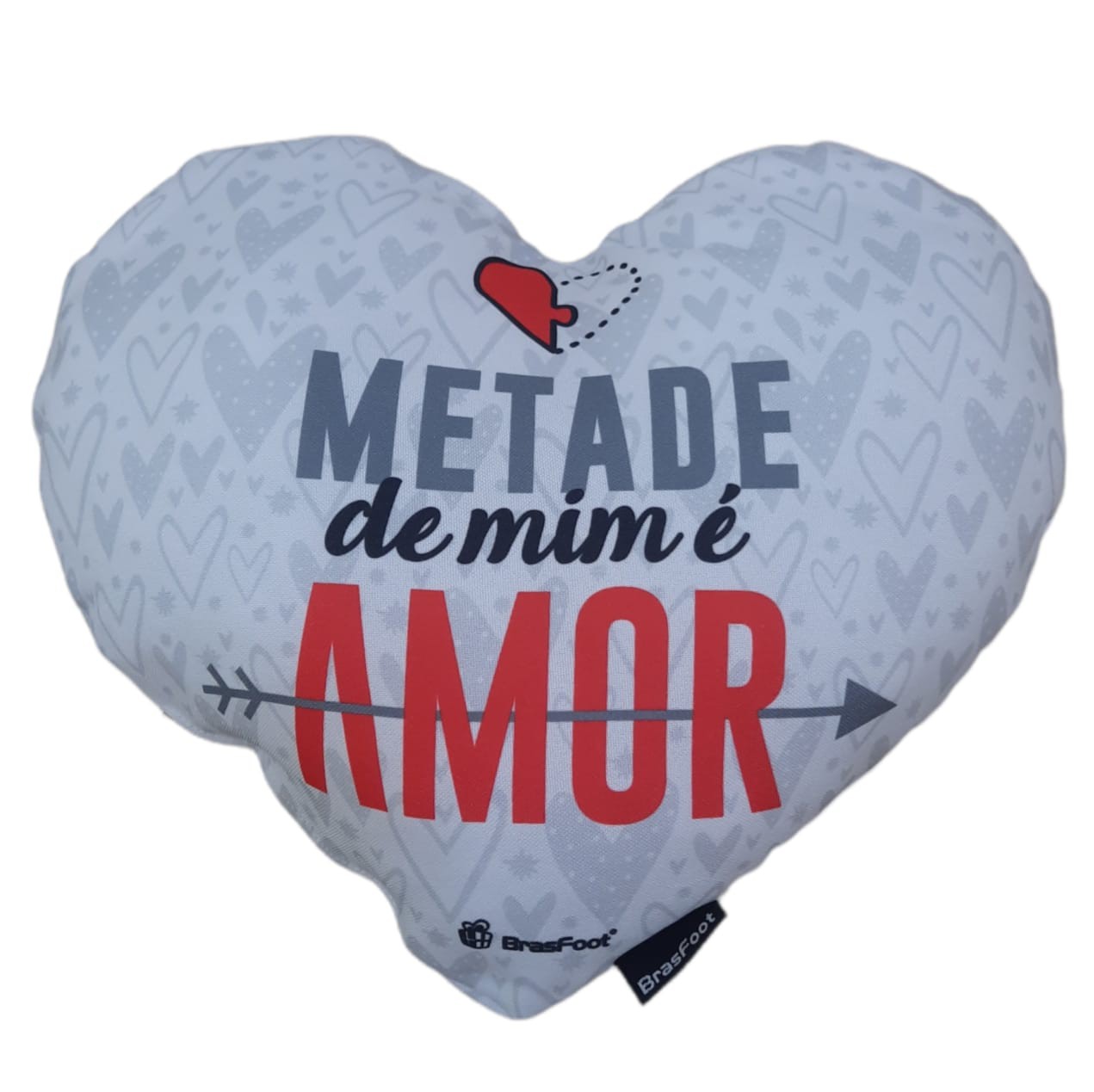 Almofada Coração Metade de Mim é Amor Celebre o amor e presenteie seu amado ou amada com a Almofada Coração Metade de Mim é Amor, A Outra Metade é Você. Ela é fofinha, tem uma linda estampa além de ter o formato de coração. Mais romântico impossível.