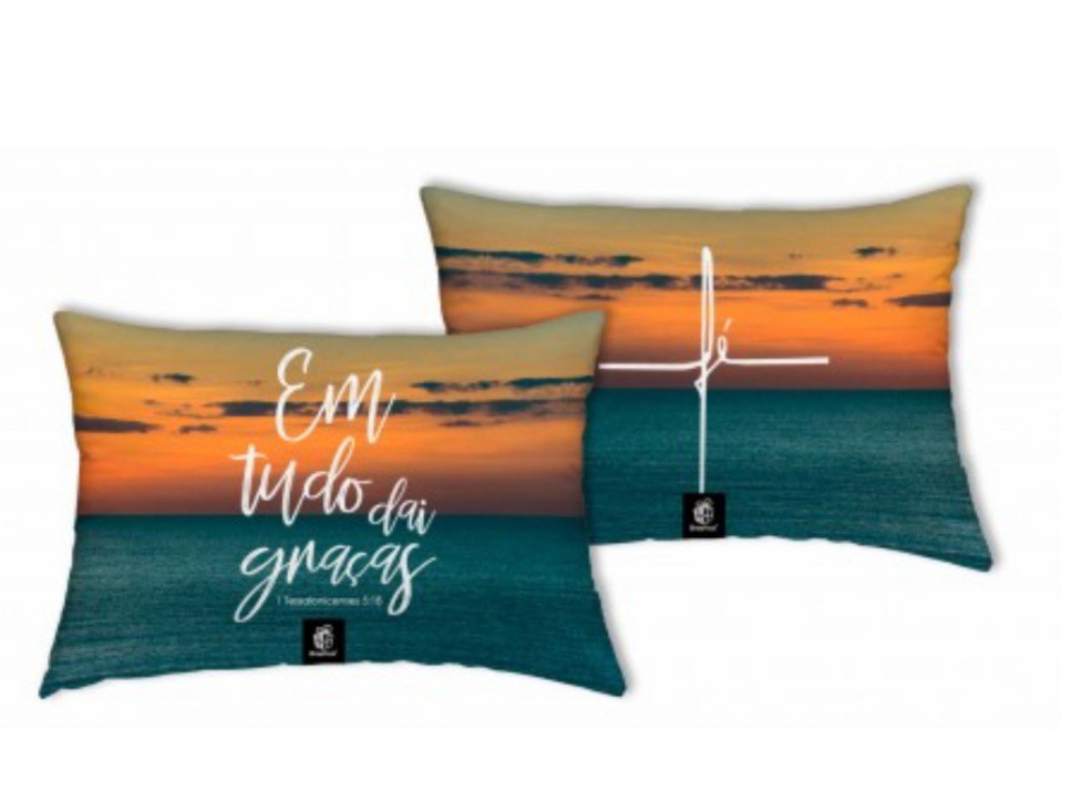 Almofada Retangular Pequena Em Tudo Dai Graças na estampa "Em tudo daí graças, Fé";