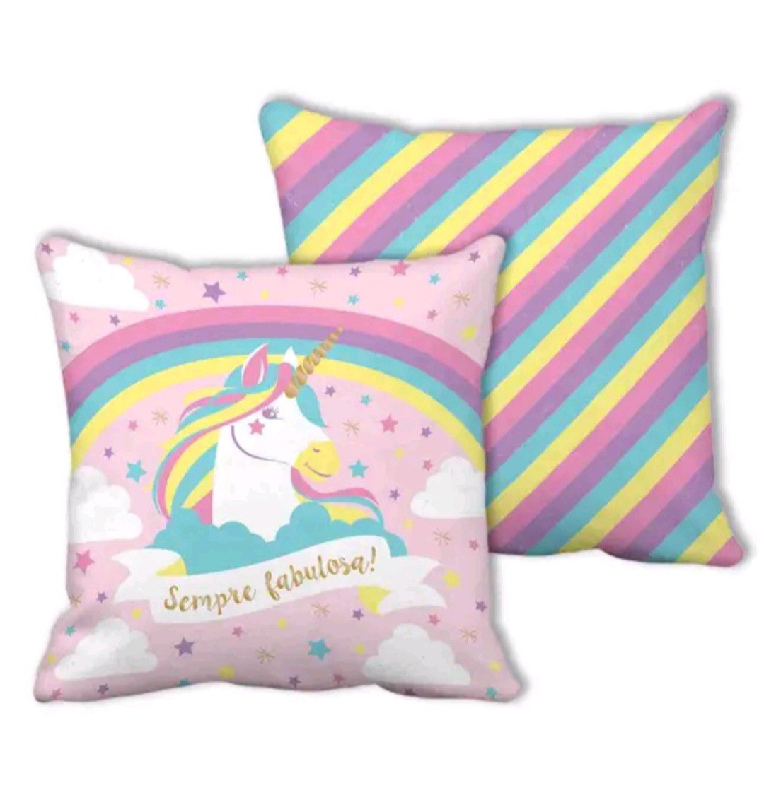 Almofada Unicórnio 2 A Almofada quadrada BICHINHOS - UNICÓRNIO 2 (SEMPRE FABULOSA) é macia, fofinha e superconfortável além de ser prática, deixar o ambiente mais charmoso e com estilo, permitindo ainda seu uso em ambos os lados.Possui a capa 100% de poliéster e é preenchida com fibra de poliéster siliconada. Características:Comprimento: 38 cmLargura:38 cmAltura: 15 cmContém 1 almofada Cuidados:Lavar a mão com sabão neutroNão usar produtor químicos e abrasivosLavar o produto na máquina pode causar danos em sua forma originalNão passar a ferro.