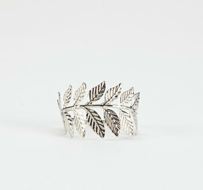 Jg 04 argolas prateada para guardanapo modelo Folhas