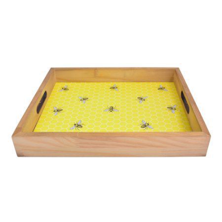 A Bandeja Retangular de Madeira Pinus Abelha com Alça é uma peça linda e diferenciada, para servir ou organizar seu cantinho do Café. Proporciona requinte ao ambiente ao compor a mesa com os seus detalhes transversais com hexágono representando a colmeia na cor branca com diversas abelhas desenhadas no fundo da bandeja, agregando qualidade e conforto.