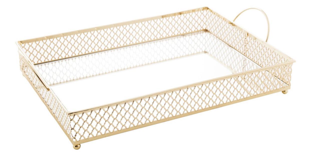 Bandeja de Metal c/espelho e alça Singapura Doura 28x20x4cm - Lyor