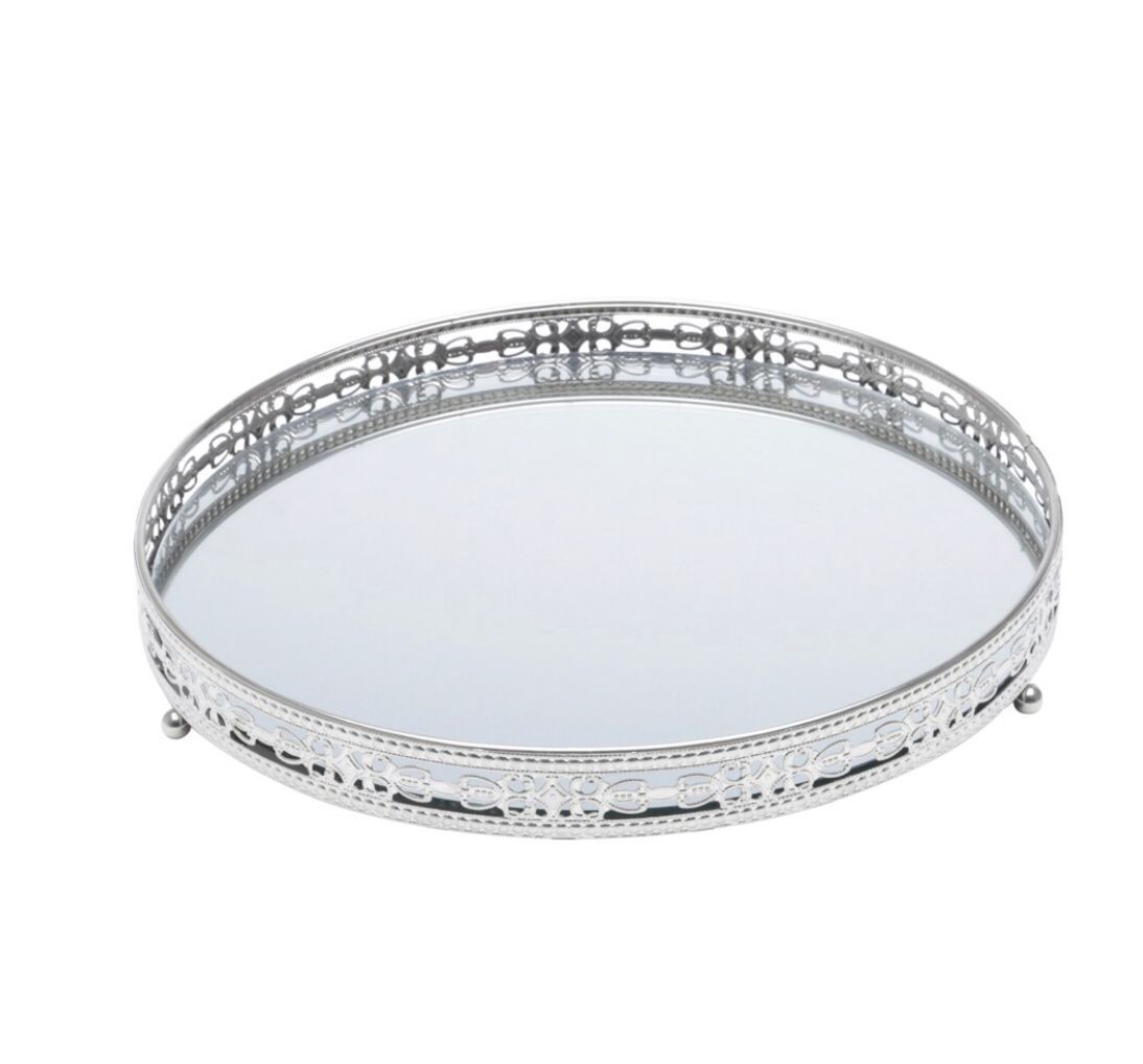 Bandeja Decorativa Espelhada Prata Lavabo Perfumes Decoração Redonda
