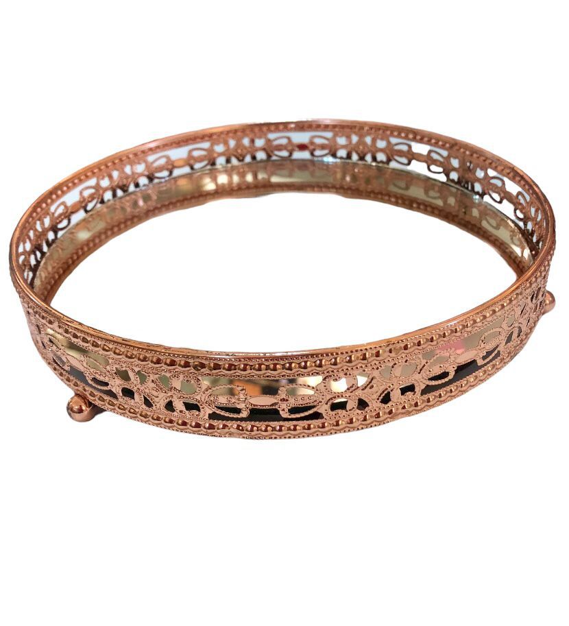 Bandeja Decorativa Espelhada Rose Gold Lavabo Perfumes Decoração Redonda