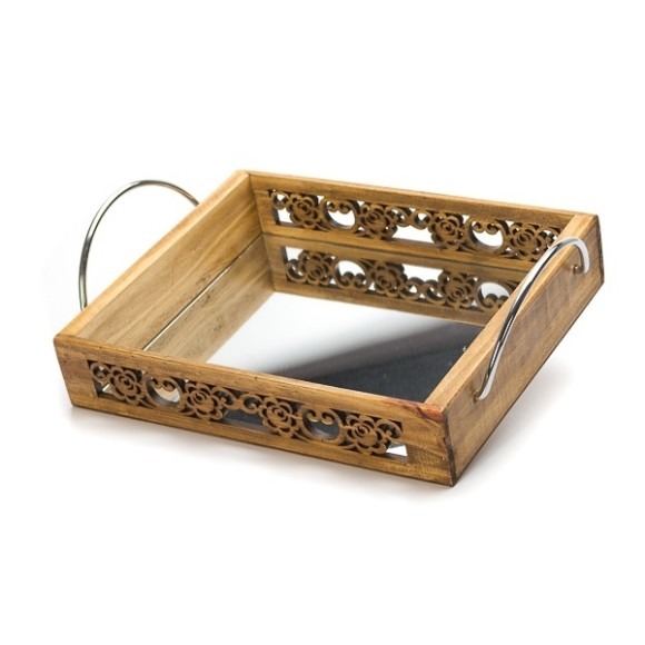 Bandeja Eespelhada Rosas Alça Cromada G Pinus Luxo