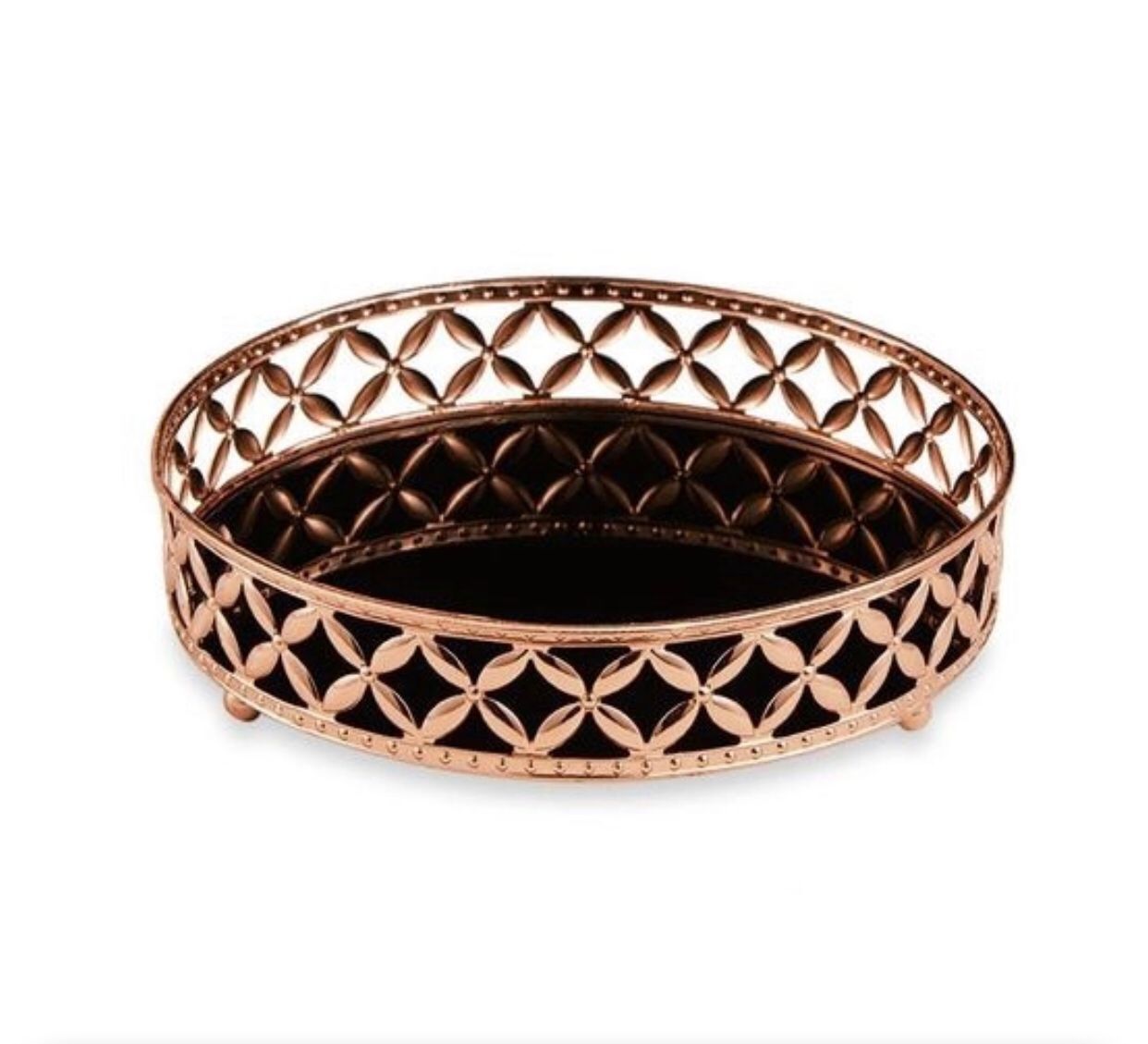 Bandeja Redonda Cobre em Metal Media com Espelho Preto - Mart