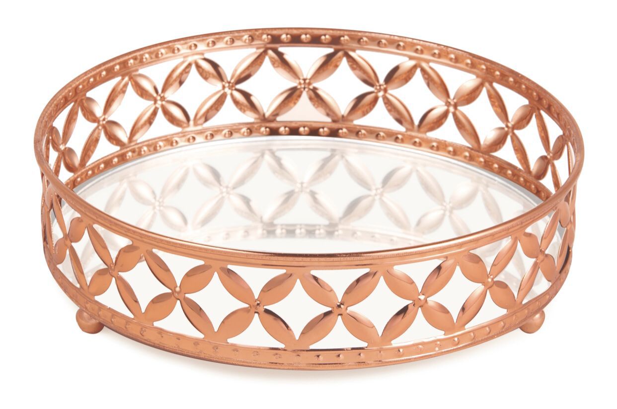 Bandeja Redonda Cobre em Metal Pequena com Espelho MART