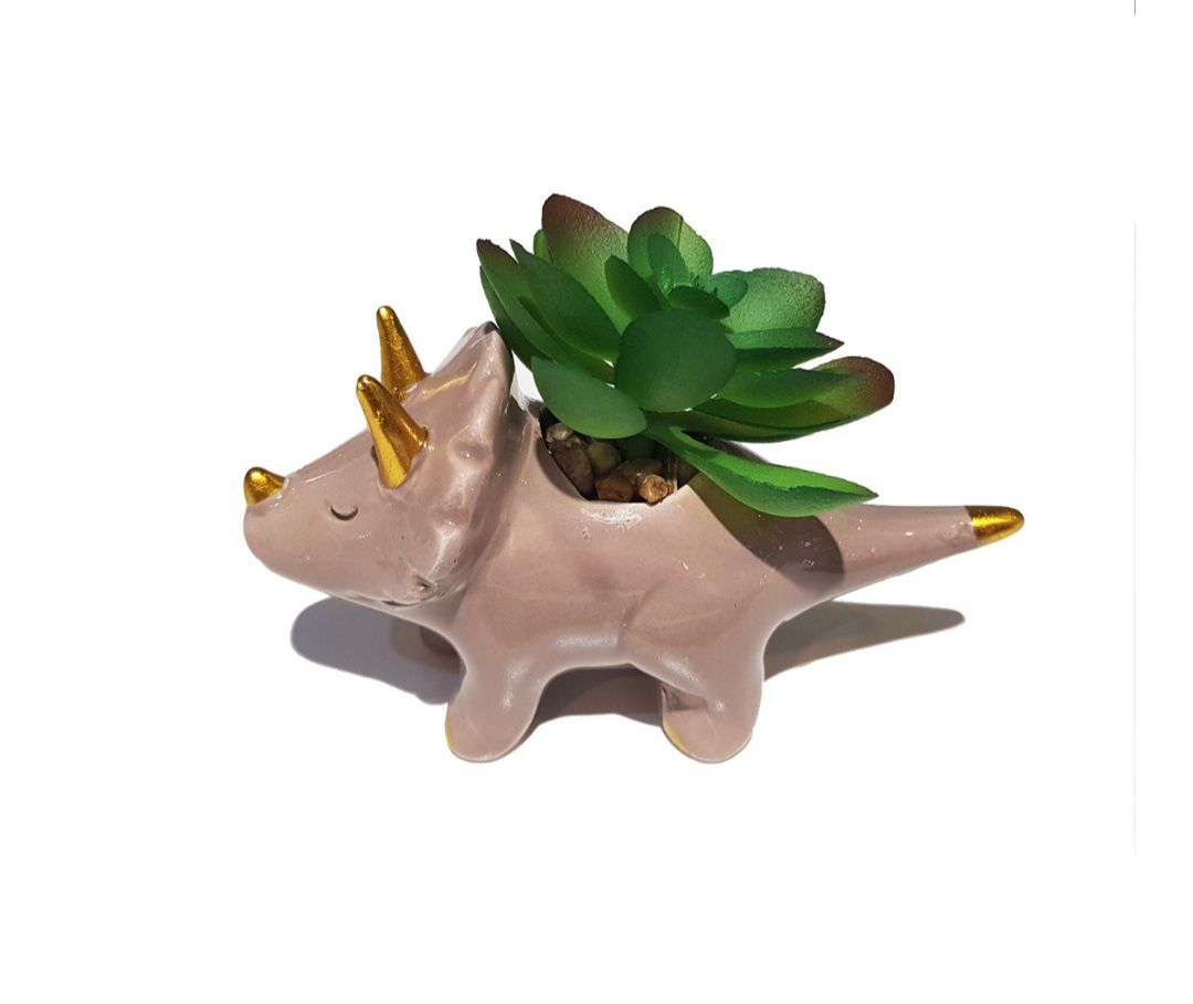 O Cachepot do Dinossauro vem incluso com uma linda suculenta.