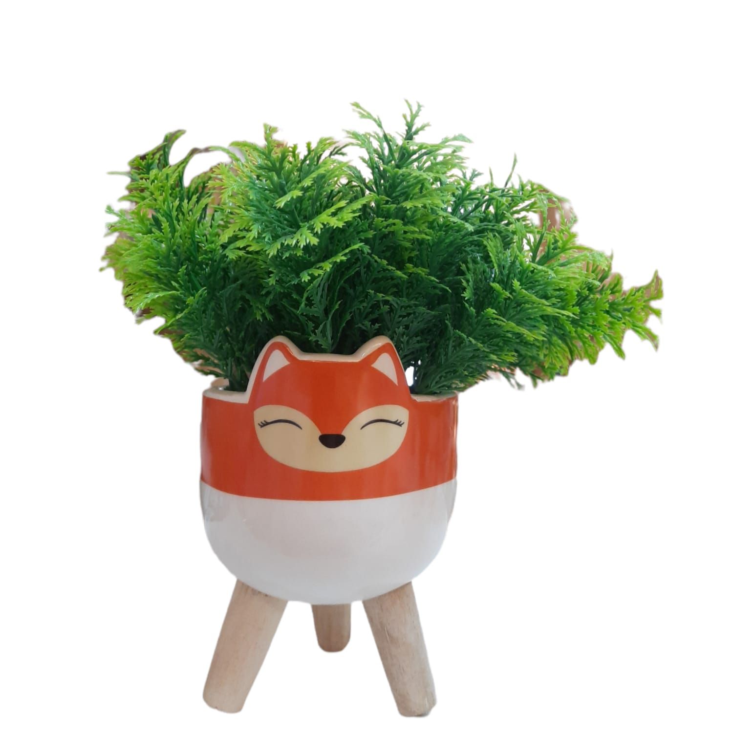 Cachepot Raposa Com Pernas Madeira Com Verdinhos