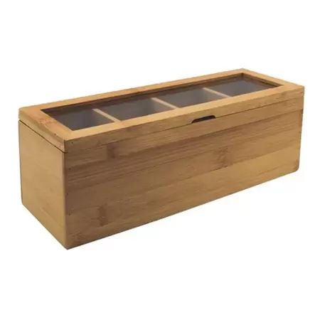 Caixa Organizadora De Bambu Multiuso Café Chá 4 Divisórias