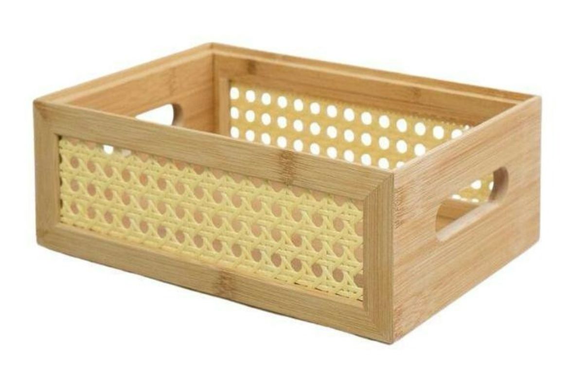 Essa é a caixa organizadora empilhável de bambu e palhinha 22 cm da OIKOS. versátil: bacana para guardar e organizar acessórios, itens de escritório, brinquedos, potes e muito mais! empilhável: você pode colocar uma caixa em cima da outra, além de deixar tudo bem organizado, otimiza o espaço no armário e na bancada.