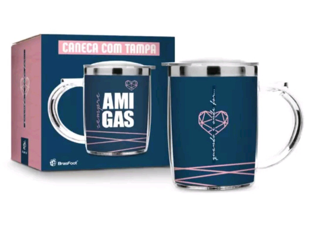Caneca Plástica Inox Térmica Amigas Sempre - 450ml Amiga é aquela que está sempre presente quando você mais precisa. É quem sempre estende a mão, quem sempre tem um abraço de conforto. Que tal presentear essa super pessoa com um mimo todo especial? A Caneca Plástica Inox é fabricada em plástico com revestimento em aço inox de alta qualidade e livre de BPA para garantir a durabilidade e resistência durante seu uso. A camada dupla do material e sua tampa com vedação em silicone, permite manter temperatura da bebida por mais tempo.