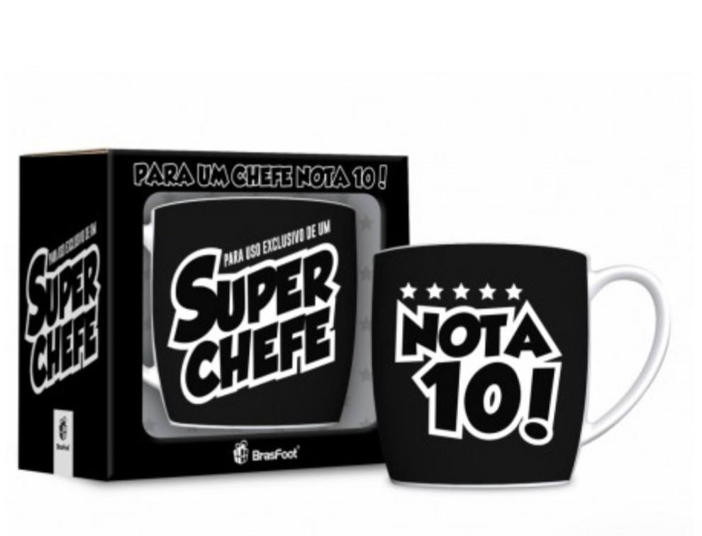 Caneca Porcelana Urban Chefe Nota 10 - 360ml é ideal para presentear aquela pessoa que tem empatia e o dom de liderar uma equipe perfeitamente.
