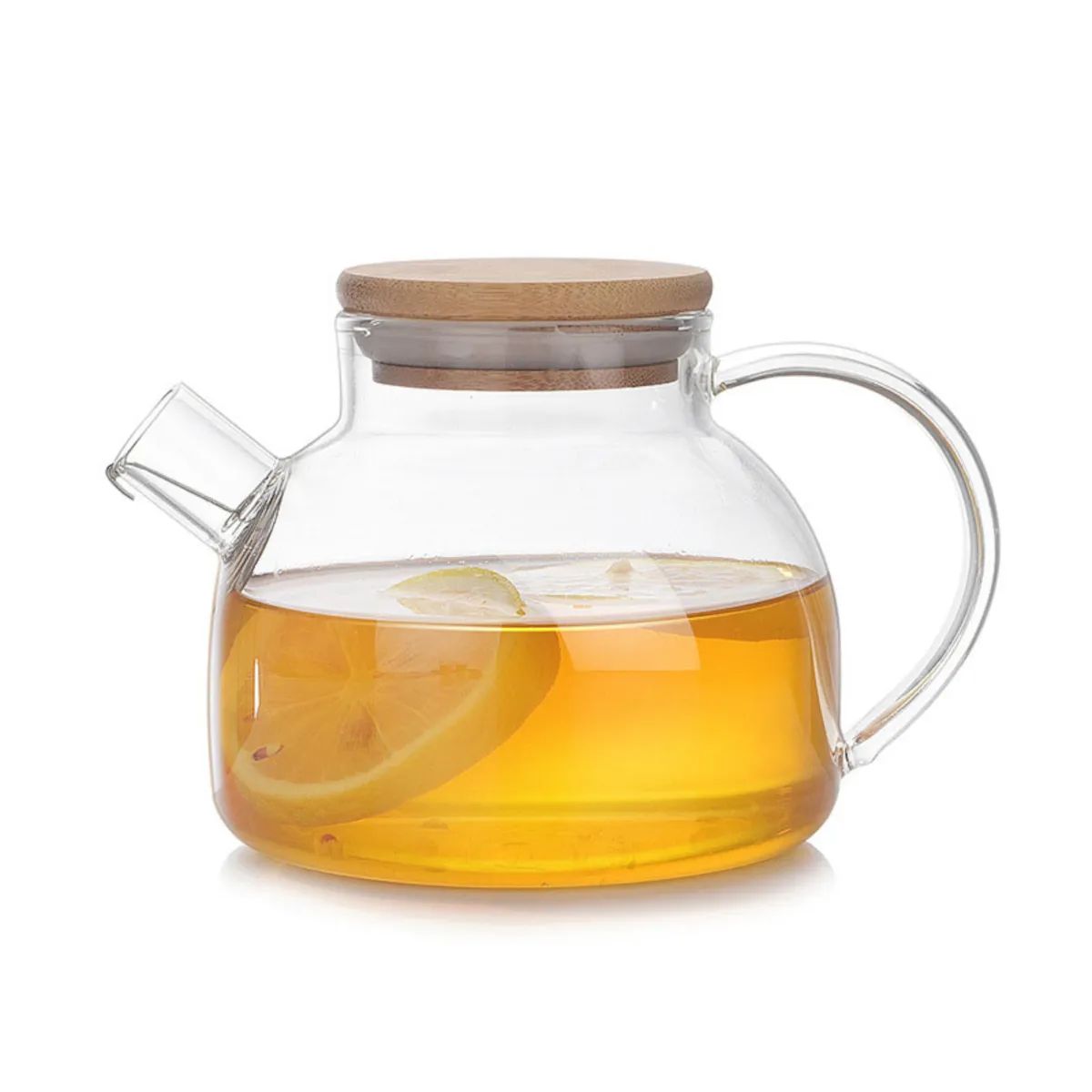 Chaleira de Vidro 1 litro Stanford produzida com vidro borosilicato podendo ir ao fogo. Acompanha tampa de bambu e coador de inox.