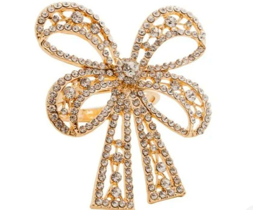 Kit 4 Anéis Porta Guardanapo Laço Dourado Zinco 61410