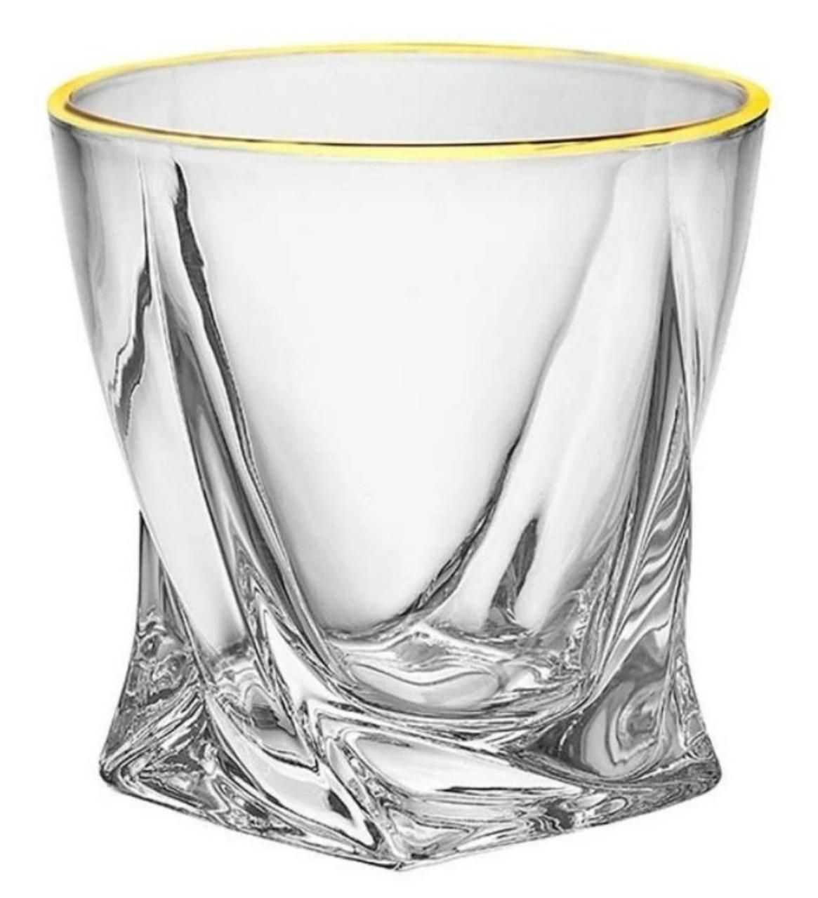 Pode ser usado para servir outros drinks, tais como sucos, doses, Campari, caipirinhas entre outros. Cada peça do conjunto é fabricado em cristal transparente com um design moderno no fundo do copo. Ideal para servir Whisky, com uma delicada borda em dourada, dando mais charme e sofisticação para a peça.