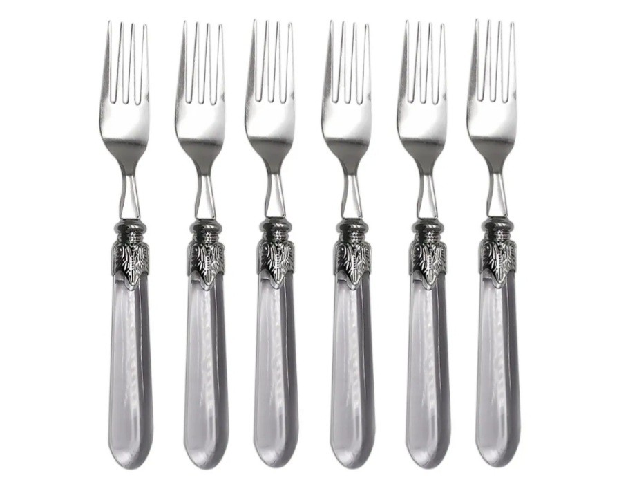 Cj 6 Garfos P/ Mesa de Aço Inox C/ Cabo de Plástico Destiny Transparente 22cm