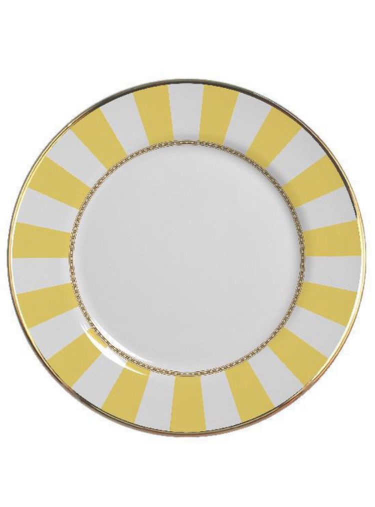 Prato Raso de Ceramica Yellow Strip Borda Ouro 28,5cm