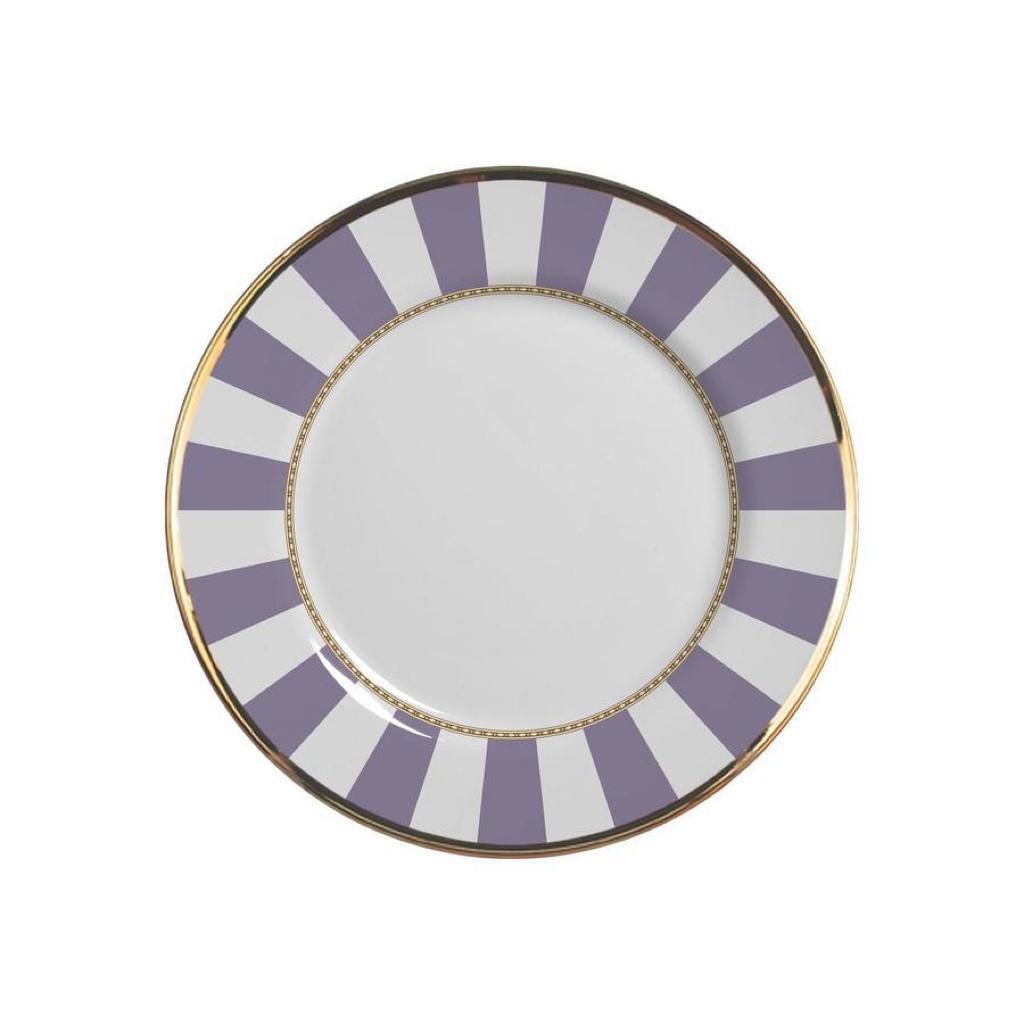 Prato Sobremesa de Ceramica Lavender Strip Borda Ouro 19,5cm