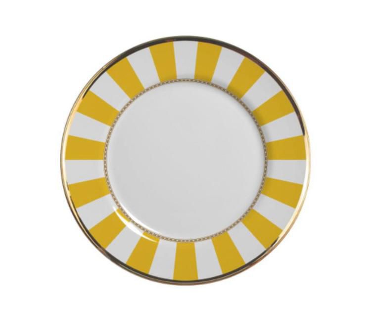 Prato Sobremesa de Ceramica Yellow Strip Borda Ouro 19,5cm