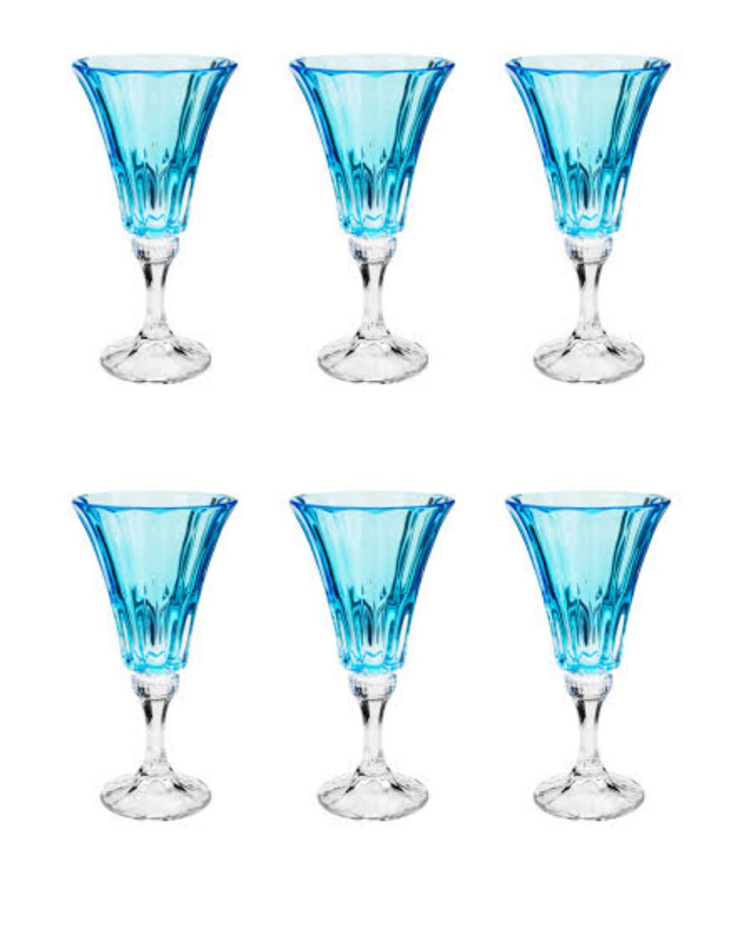 Cj 6 Taças de Cristal Ecológico P/ Água Wellington Island Paradise Azul - Bohemia