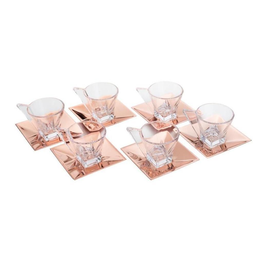 Com este jogo de 6 xícaras para chá de vidro transparente com pires quadrado de aço rose gold da linha Veneza, a sua mesa receberá todo o charme e requinte ao servir os seus convidados, design moderno e inovador para receber com charme e elegância.