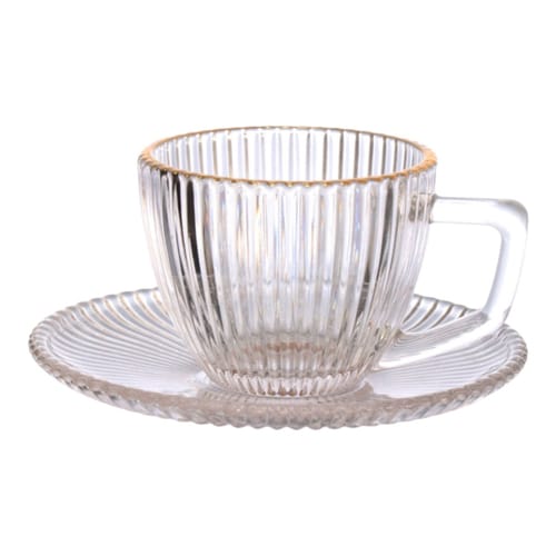 xícara para chá com pires de vidro graffiato borda dourada 230ML 6 peças