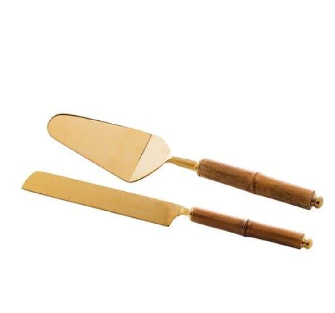 Conj. 2 Pçs Aço Inox P/ Bolo C/ Cabo Bambu Dourado- Wolff