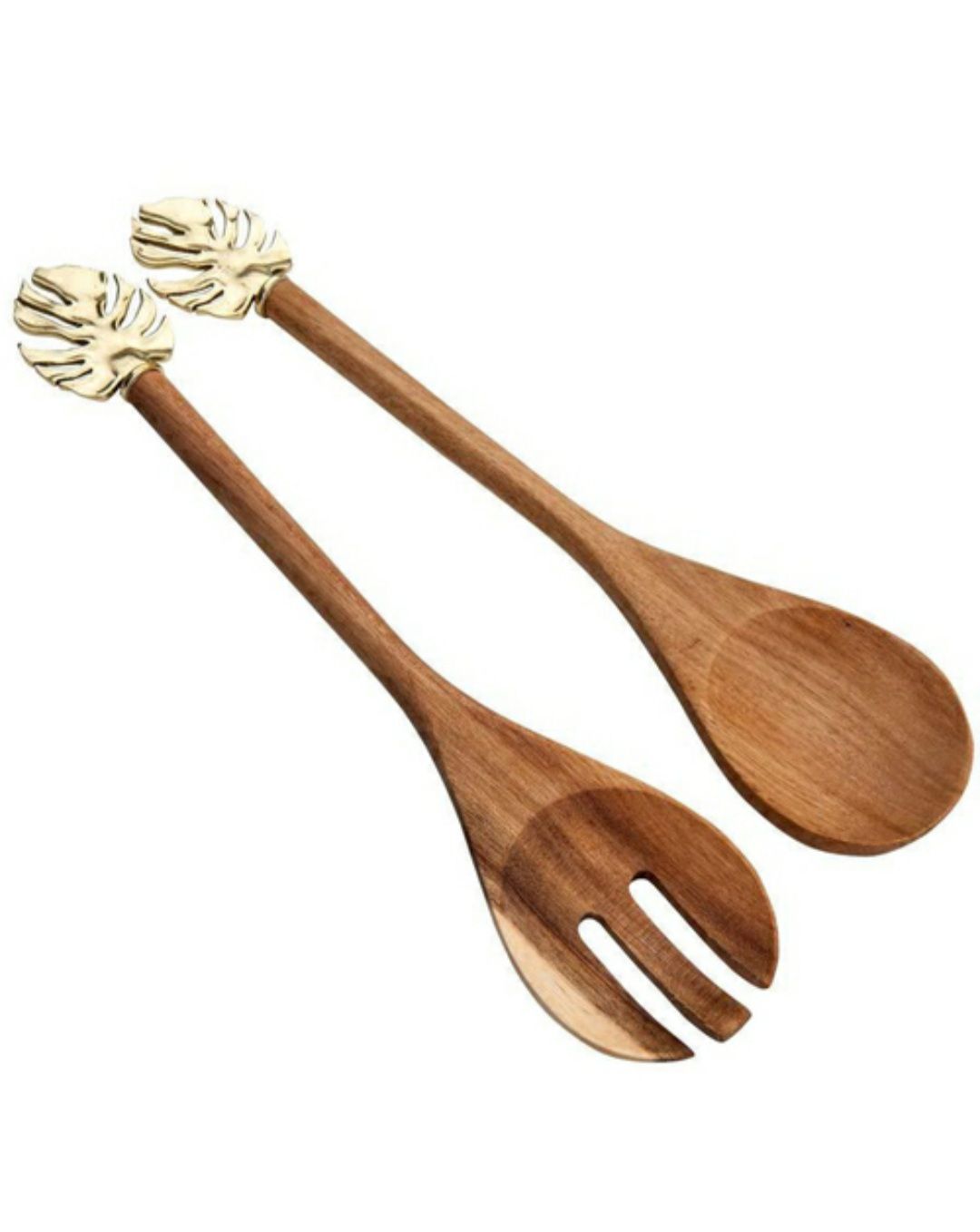 Conj. 2 Pçs Colher e Garfo de Madeira Costela de Adão Dourado