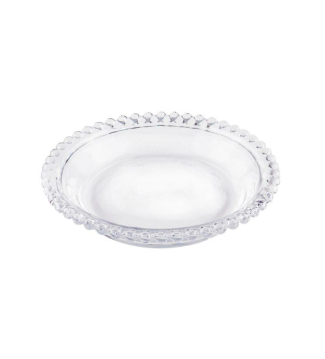 Com o Prato de Cristal transparente modelo Pearl, a sua mesa receberá todo o charme e requinte ao servir os seus convidados. Da marca Wolff, o Prato possui bordas trabalhadas com pequenas bolinhas em alto relevo, um detalhe charmoso e delicado.