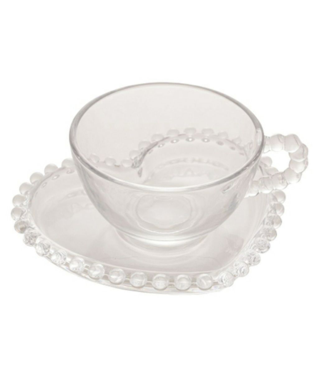 Conj. 4 Xicaras Chá Cristal c/ Pires Coração Pearl 180ml- Wolff