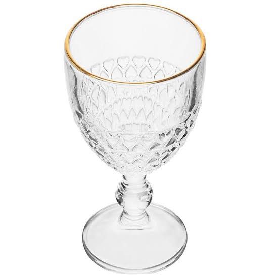 Os copos são feitos em vidro transparente, com capacidade de 320ml cada, uniformes e com design vintage remetendo a taças clássicas. A borda dourada destaca e adiciona um toque de requinte. Ideais para uso residencial, atendem bem à necessidades de servir água ou outras bebidas em estilo sofisticado e prático.