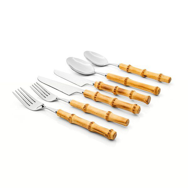 Conjunto completo com 36 talheres com cabos em bamboo natural, combinando elegância e sustentabilidade.