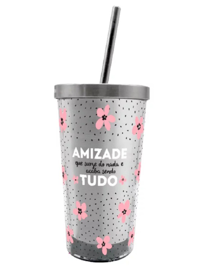 Copo Com Canudo Eco de Metal Amizade Que Surge - 450ml copo Canudo Eco Amizade Que Surge é ideal para presentear sua melhor amiga! Ainda vai ajudar a combater o descarte de canudos no meio ambiente.