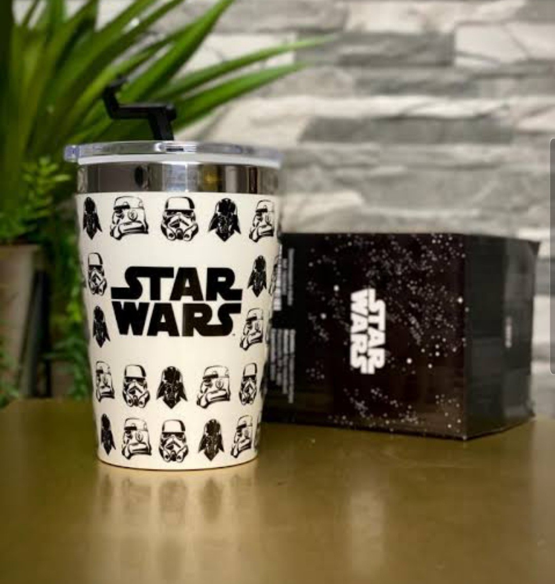 Copo Com Tampa Star Wars Oficial - 300ml ótima para você que gosta de se hidratar com estilo e praticidade não importa aonde com o Copo viagem Snap Stormtrooper e Vader que tem a tampa revestida em plástico e com seu interior feito em aço inoxidável.