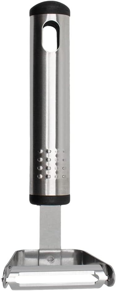 A sua resistência à corrosão e propriedades higiênicas e estéticas fazem do aço inox um material muito atrativo, além de manter suas propriedades mesmo quando submetida a elevadas ou baixas temperaturas. Reciclável e de grau alimentício. Descasque legumes, verduras e frutas de forma simples e prática facilitando o preparo de suas receitas. Com nosso descascador, você pode ter os alimentos descascados sem esforço. Pode ser usado para batata, maça, cenoura, manga, pepino, entre outros. Feito inteiramente em aço inoxidável, o nosso descascador foi ergonomicamente projetado para ser o mais confortável e prático de usar possível. Suas lâminas são muito afiadas e também são feitas em aço inoxidável. É estável e remove a casca perfeitamente. O uso é simples e fácil, para usá-lo, basta pegar o alimento que deseja e tensionar a lâmina contra a casca. Pode ser utilizado para retirar a casca de batatas, pepinos, cenouras, abóboras, maçãs, mangas e muitos outros alimentos. Construído em aço inoxidável de qualidade, é de fácil lavagem. Para isso use esponja macia e detergente neutro e evite utilizar exponha de aço, pois pode riscar e danificar o inox, ele também pode ser lavado em lava-louças. Medidas: C- 15cm L-5,5cm A-3,5cm