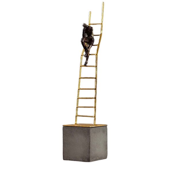 Escultura Decorativa Homem Escada uma composição dos tons dourado e preto, para brilhar no ambiente a ser decorado.