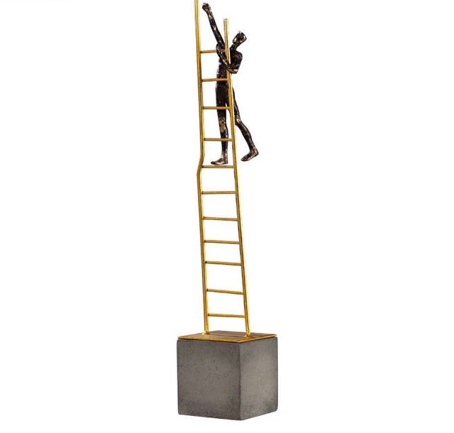 Escultura Decorativa Homem Escada uma composição dos tons dourado e preto, para brilhar no ambiente a ser decorado.