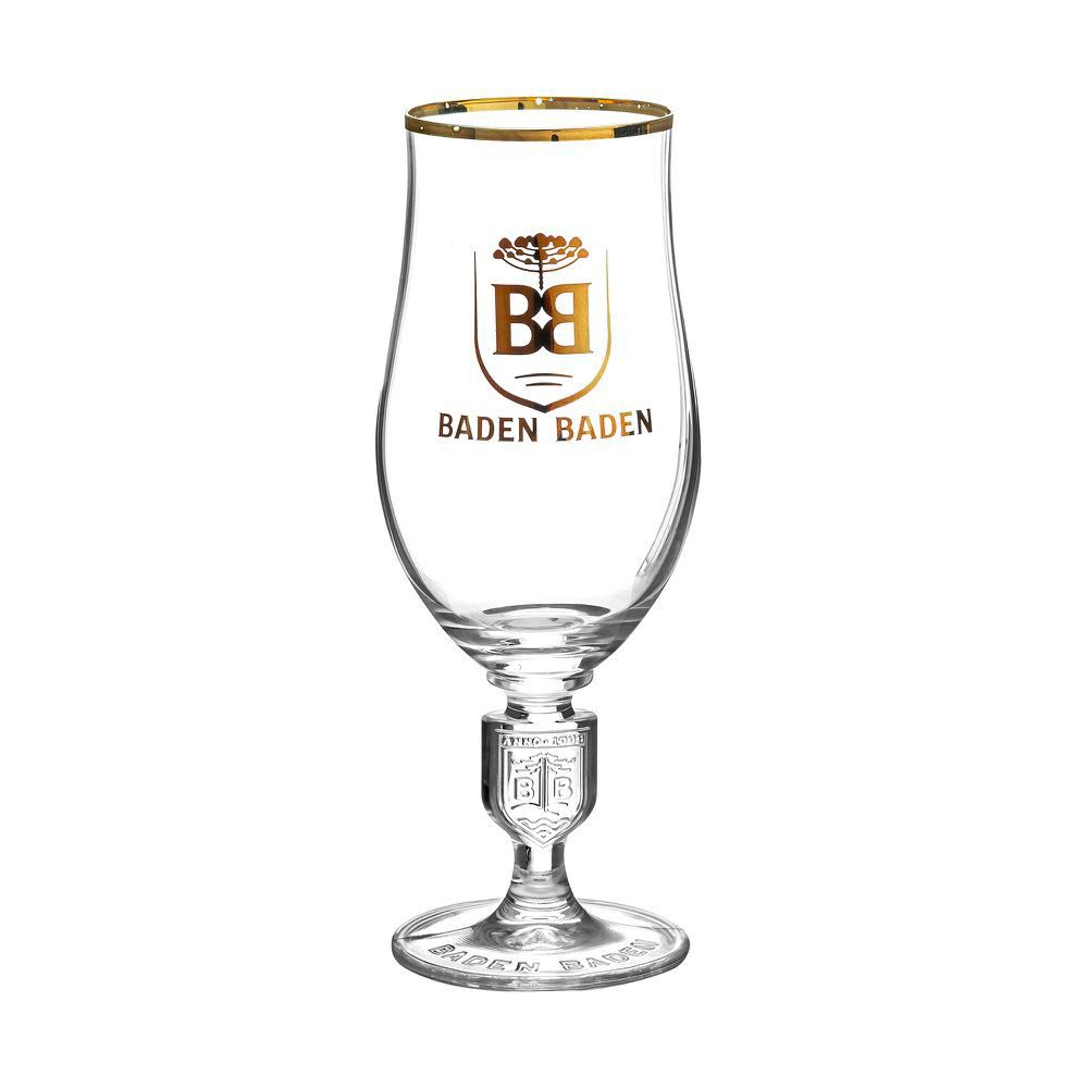 A Taça Baden Baden é perfeita para quem quer apreciar bebidas com elegância. Feita de vidro resistente, apresenta o logo da Baden Baden em destaque e bordas douradas que valorizam a apresentação.