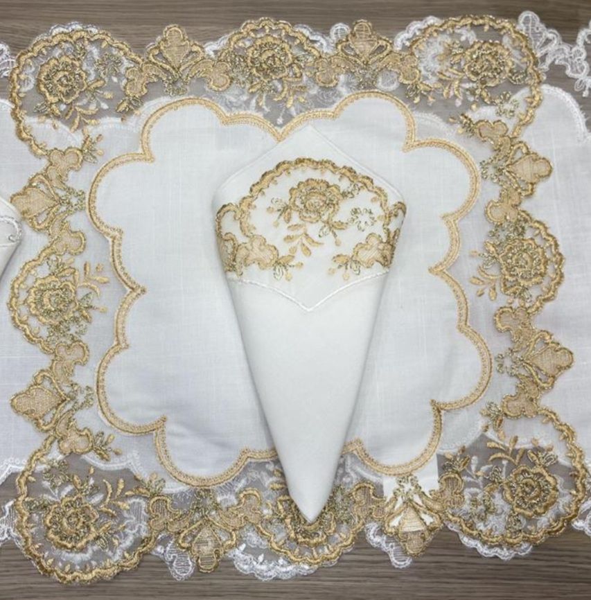 Jogo Americano+ Guardanapo com Renda Dourada - Rafimex