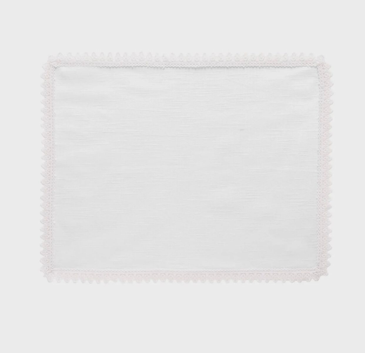 A linha Isis com borda trabalhada em renda, proporcionando um toque romântico e sofisticado a sua mesa.