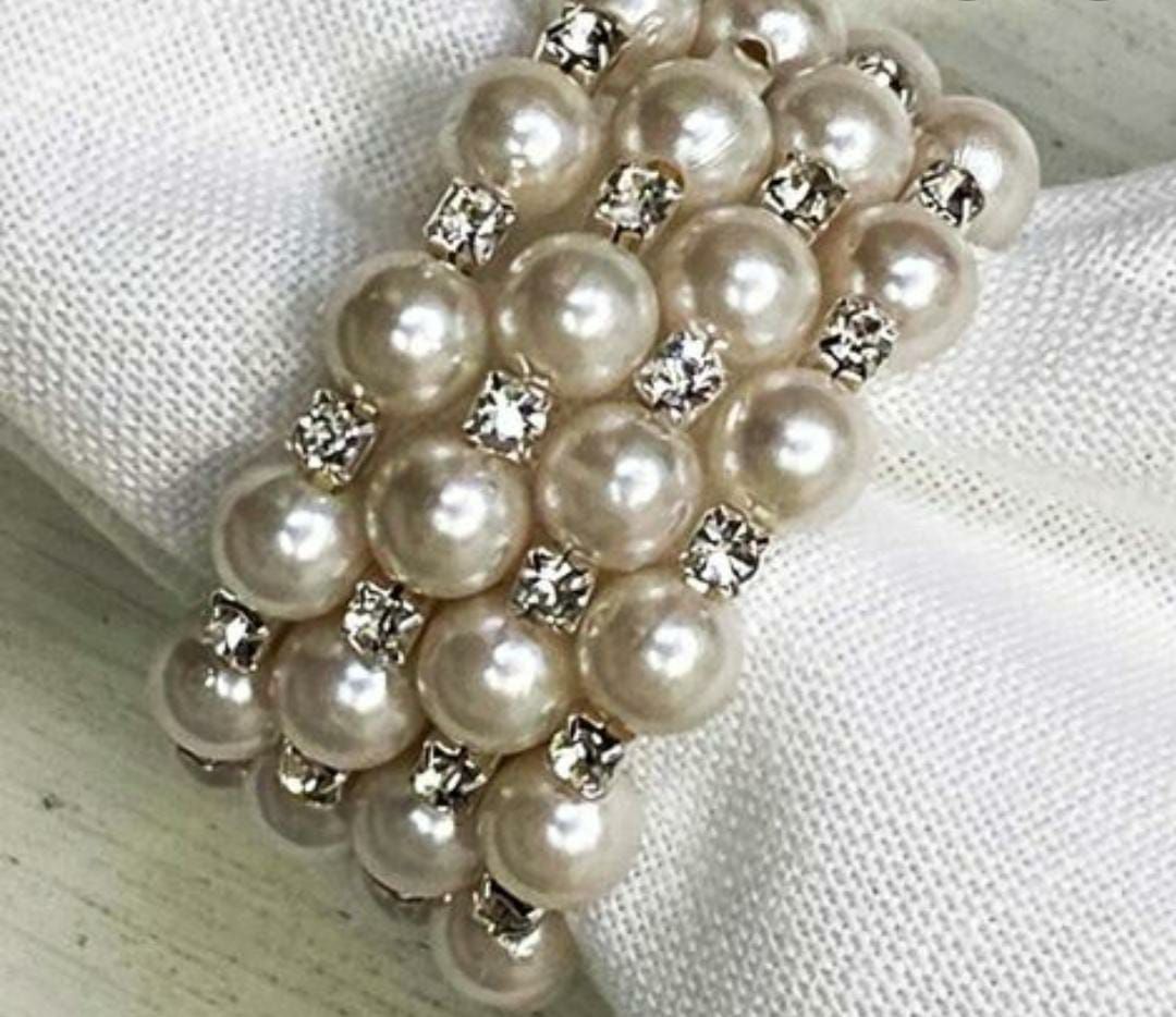 • Argola de guardanapo de pérola com strass