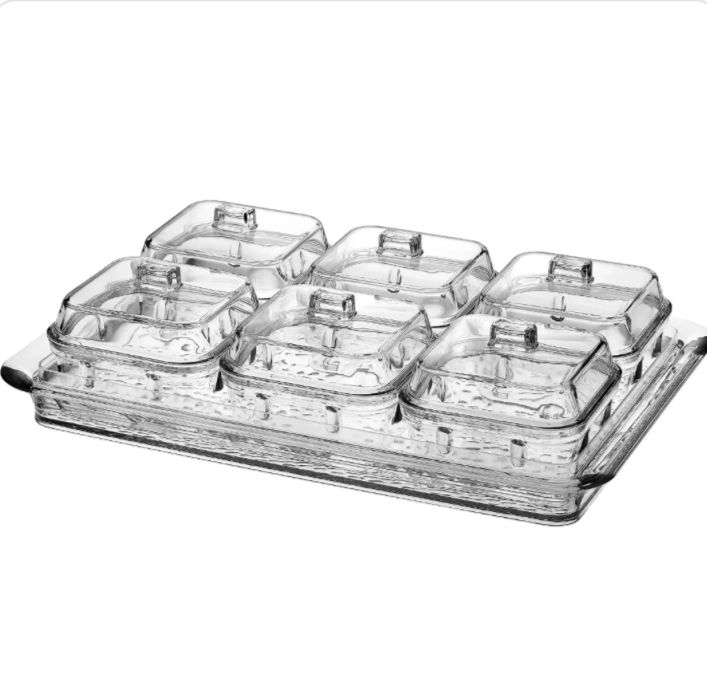 Jogo de 6 Petisqueiras em Acrílico Com Tampa e Suporte L35xP25xA8,5cm