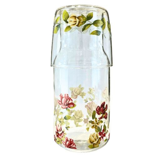 A moringa é decorada com belos detalhes floridos, que acrescentam um toque de elegância e serenidade ao seu quarto. O vidro borossilicato é conhecido por sua resistência ao calor e à quebra, tornando esta moringa uma opção segura e durável para armazenar água ou sua bebida favorita ao alcance da sua cama.