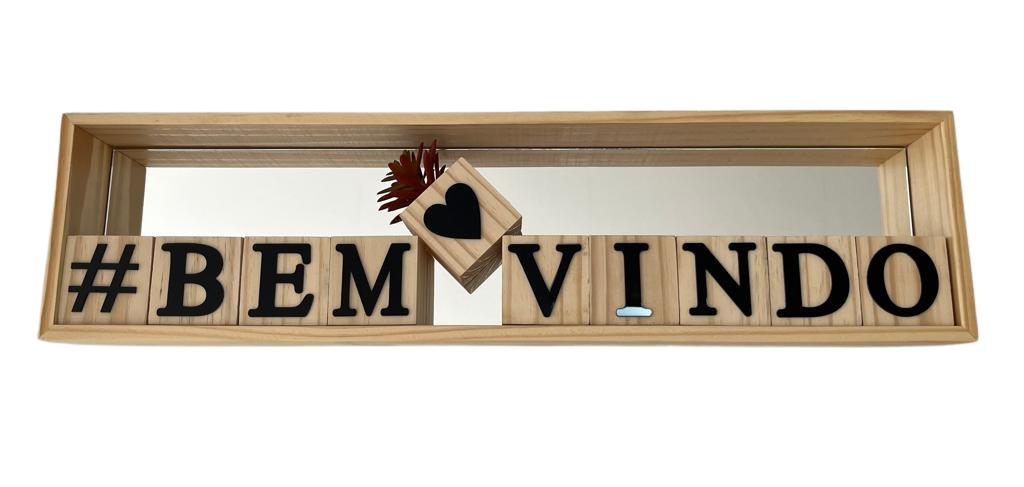 Nicho Cubos Bem Vindo Espelho Preto Pinus Luxo
