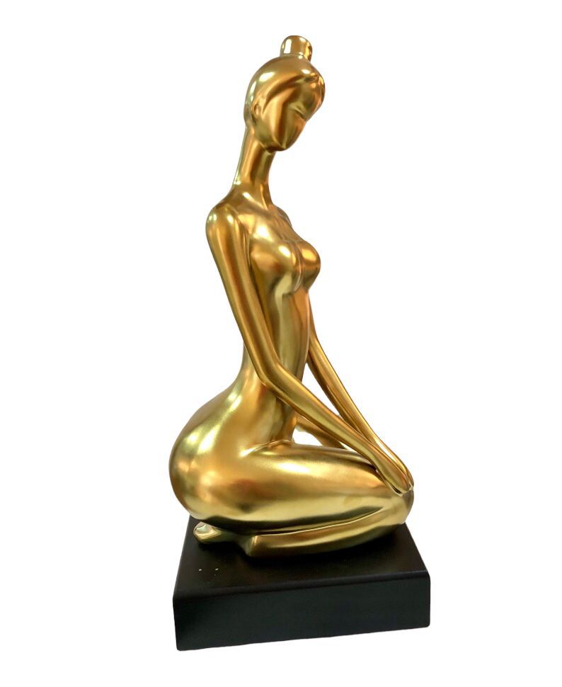 a Escultura Mulher Dourada 35cm e Feita de Ceramica e MdfMaterial: Ceramica/mdfDimensões (LxCxA): 13x15x35 cm