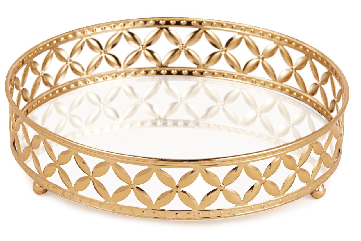 Bandeja Redonda Dourada em Metal Media com Espelho MART